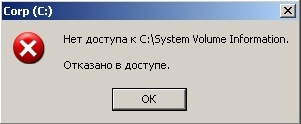 Пробуем удалить теперь все вышеперечисленные файлы. Однако System Volume Information выдает ошибку.