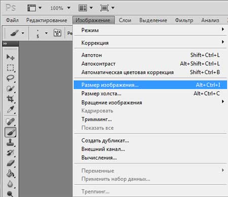 Уменьшаем ее ширину и высоту. Для этого жмем «Изображение – Размер изображения»: