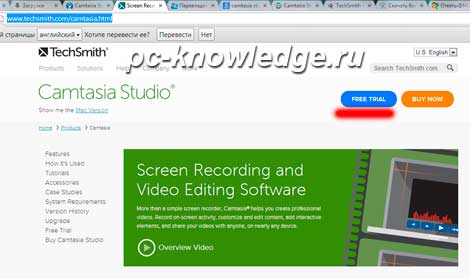 Как установить camtasia studio. Для начала переходим на сайт разработчика продукта http://www.techsmith.com/camtasia.html