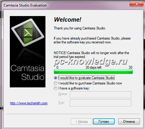 Как установить camtasia studio разобрались. Чтобы записать видео теперь, прочитайте статью "как сделать свой видеоурок". Там же будет и обучающее видео, записаное этой же программой.