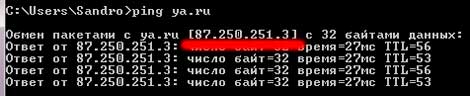 Команда «ping» выдаст ip сайта, по которому проще всего связаться с вашего компьютера, например «ping ya.ru» выдает ip 87.250.251.1