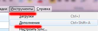 Как узнать ip адрес сайта с помощью браузера. Нужно активировать дополнение. В «Mozzilla Firefox» жмем в верхнем меню «инструменты», переходим в «дополнения»