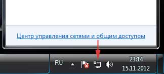 Кстати, узнать mac адрес сетевой карты можно несколькими способами, вот первый из них. Смотрим на значок Интернет-соединения в панели автозагрузки возле часов, нажимаем на него левой кнопкой мыши, у нас высвечивается список подключений и в самом низу ссылка «Центр управления сетями и общим доступом», нажимаем на нее.