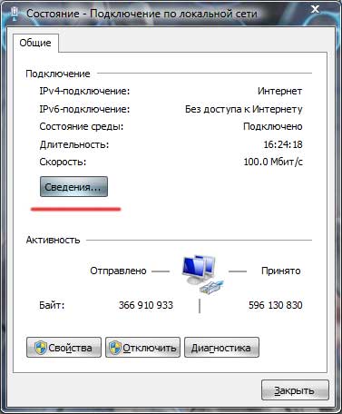 Вот нам открылись сведения о сетевом подключении, среди которых есть «Физический адрес», а это как раз то, что нам нужно: