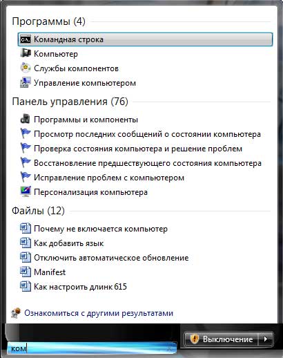Еще одни способ узнать MAC-адрес сетевой карты – это использовать командную строку. Для того чтобы в нее попасть в Windows 7 достаточно в строке поиска забить всего пару букв «ком» и кликнуть по нужному результату: