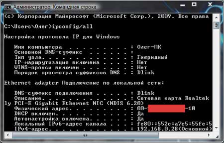 Вот вы и узнали MAC-адрес сетевой карты вашего компьютера.