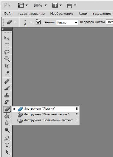 Далее выбираем инструмент «Ластик» и стираем все лишнее что осталось.