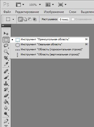 Перетаскиваем на новый документ свою фотографию и подгоняем ее по размеру. Чтобы выделить часть фотографии используем инструмент «Прямоугольная область»