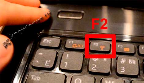 Далее сразу же после включения нужно много раз жать определенную кнопку. Именно не зажать и держать, а часто нажимать. Частота несколько раз в секунду. В ноутбуках это в 90% случаях «F2».