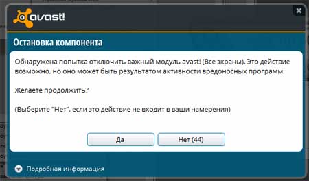 Получаем предупреждение о том, что выключается важный модуль и нажимаем на кнопку «Да».