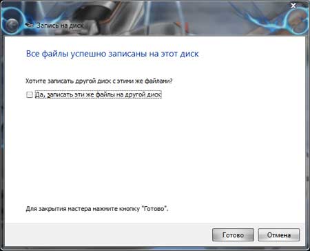 После того, как закончится запись, вы получите сообщение, что все файлы успешно записаны на этот диск.