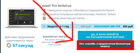 После выбора при загрузке, вас еще раз переспросят в пользу платного, более навороченного антивируса и предложат скидку. Нужно выбрать «Нет, спасибо, я предпочитаю бесплатную защиту».