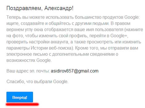 В последнем окне жмем «Вперед!» и регистрация окончена.