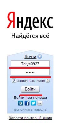 В любое время теперь , переходим по адрессу, который я указал в начале странички, или же просто на главную страничку яндекса и в поле «почта» слева экрана вводим ваш логин и пароль