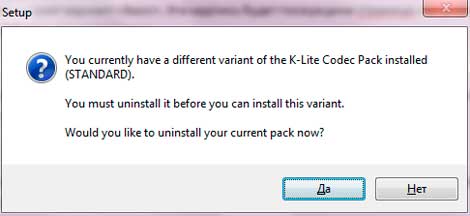 Запускаем скачанный файл. Возможно, он обнаружит другие кодеки и попросит вас удалить их перед его установкой. Он сделает все сам, просто нажимаем «Да» в таком окошке.
