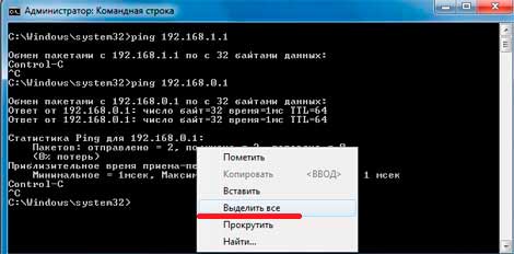 Копирование содержимого экрана – нажимаем правую кнопку мышки на экране, выбираем «выделить все» и жмем «ENTER». Содержимое скопировано в буфер обмена