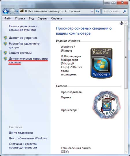 В открывшемся окне в левой колонке нажимаем на ссылку «Дополнительные параметры системы»