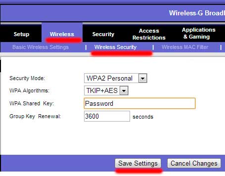 Переходим во вкладку «Wireless Security» - это ваш пароль на вайфай и ставим