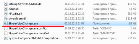 После загрузки архива, распаковываем его и запускаем файл «SkypeVoiceChanger.exe»