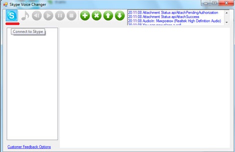 Теперь в окошке программы нажимаем на синий значок скайпа в левом верхнем углу «Connect to Skype»