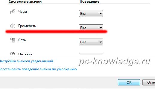 Значок громкости должен быть «вкл». Ставим «вкл.» и жмем «ок»