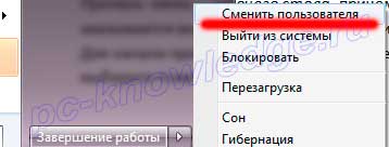 Пропали папки с рабочего стола, причем почти все. Нередки случаи, когда перед вами оказывается вообще незнакомый рабочий стол. Случается это по причине смене пользователя. Для начала просто попробуем вернуть себя. Нам нужно либо сделать перезагрузку, либо смену пользователя. Для этого, там, где мы жмем «завершение работы» выберите «смена пользователя».