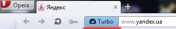 Теперь смотрим вверх, слева прямо возле адресной строки на голубом фоне появилась надпись Turbo, это значит, что режим включен.