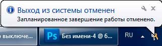 В трее, возле часов нам сообщат об отмене завершения работы.