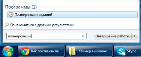Жмем «пуск» в строке поиска вбиваем «планировщик» без кавычек и нажимаем «Enter»