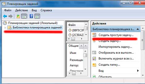 В окне планировщика заданий в правой колонке нажимаем на «библиотека планировщика заданий»