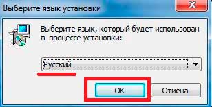 Запускаем загруженный файл, выбираем язык, который будет использован в процессе установки «Русский» Жмем «Ок».