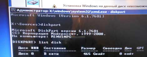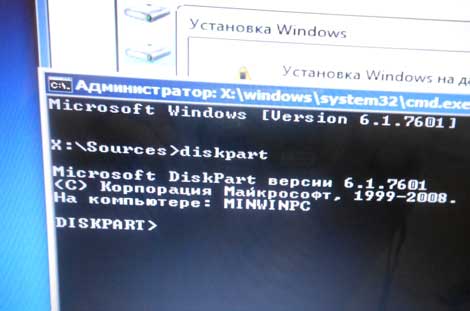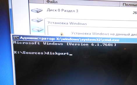 После возникновения ошибки, нам нужно вызвать специальную утилиту, для работы с винчестером, которая присутствует на любом установочным диске. Вызывается она комбинацией клавиш «Shift+F10». (на некоторых ноутбуках, если не сработало, то "Fn+Shift+F10") Выйдет черное окошко, в котором необходимо набрать «diskpart» без кавычек и нажать «Enter»