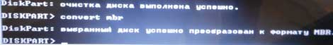 Теперь преобразуем с GPT в MBR. Вводим команду «convert mbr».