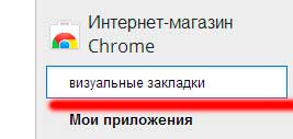 Откроется страничка со всякой ерундой. Слева вверху в строке «поиск в расширениях» пишем «визуальные закладки» без кавычек. И нажимаем «Enter»