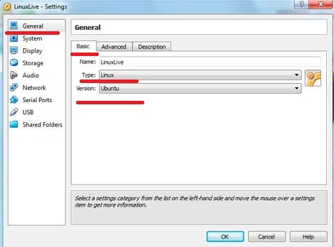 В пункте «General», закладке «Basic» выбираем «Type: Linux», «Version: Ubuntu».