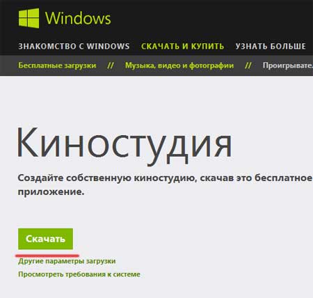 Если у вас Windows 7, то придется слегка помучиться и установить дополнение Windows Live, которое называется Киностудия Windows. Переходим по ссылке http://windows.microsoft.com/ru-RU/windows-live/movie-maker-get-started и нажимаем на кнопку «Скачать»