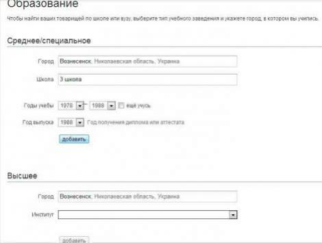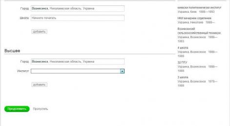 В строчке "Высшее образование" такая же процедура, добавляем все учебные заведения. Нажимаем "Продолжить" когда закончите, все что вы указали будет видно в колонке справа