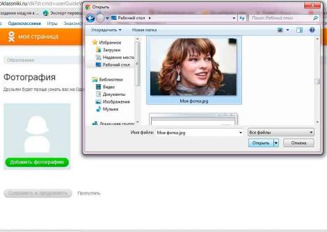 Переходим к шагу с фотографией. Тут будет выбор вашей аватарки, вашего лица. Пропускаем данный шаг или нажимаем добавить фотографию, выбираем ваше фото на компьютере, жмем "Открыть"